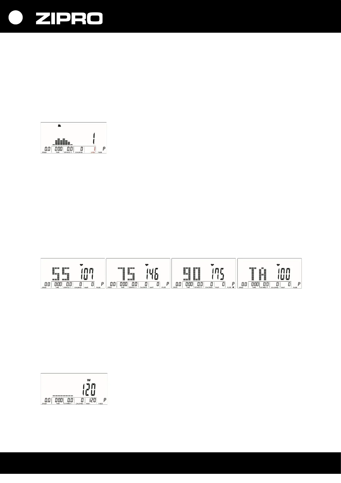 По време на тренировка можете да смените нивото на натоварване (LEVEL) с бутоните UP и