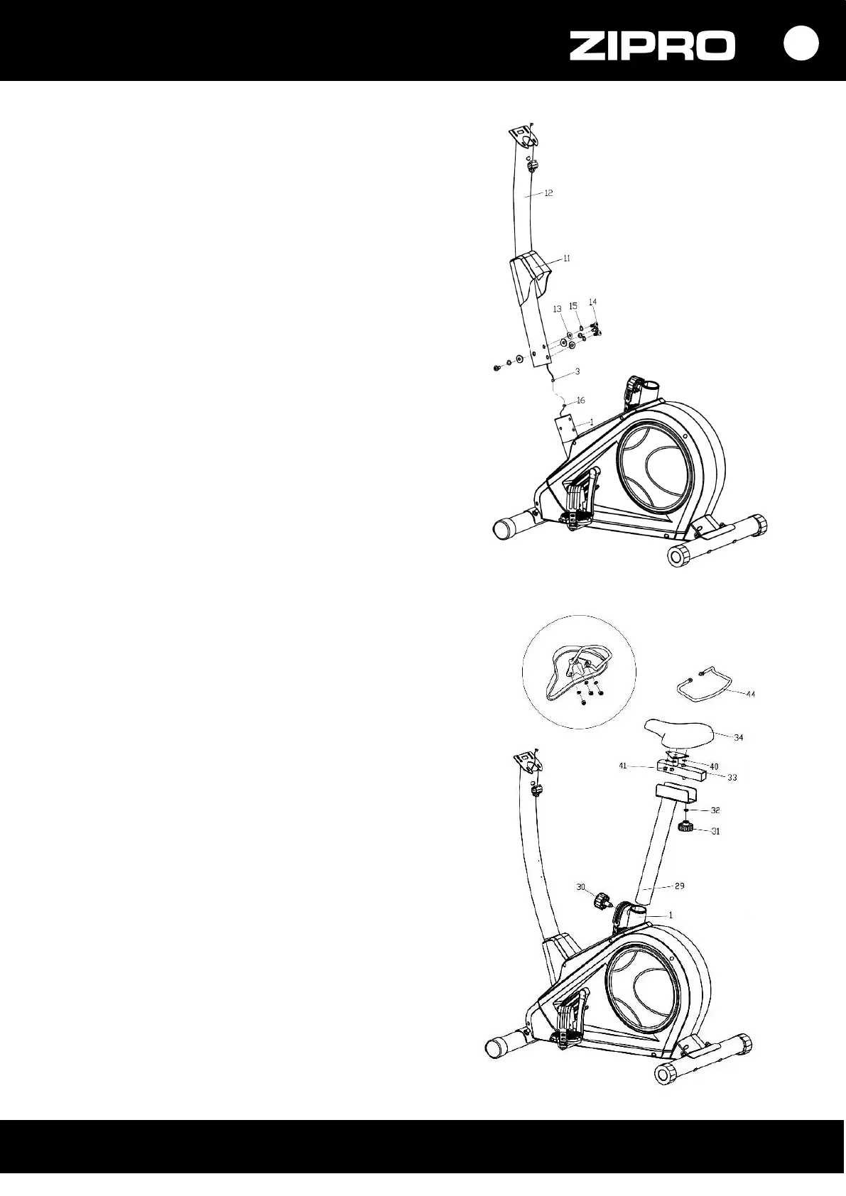 Insertar el tubo del sillín (13) con sillín (34) en parte posterior