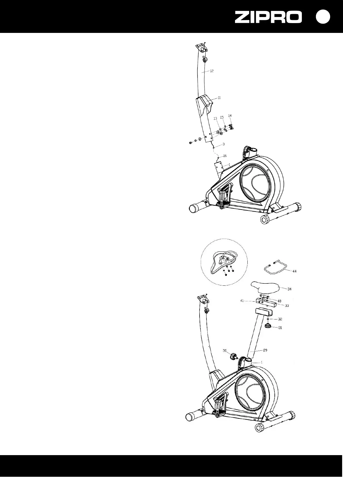 Montați șaua (34) pe ghidajul șeii (33) folosind