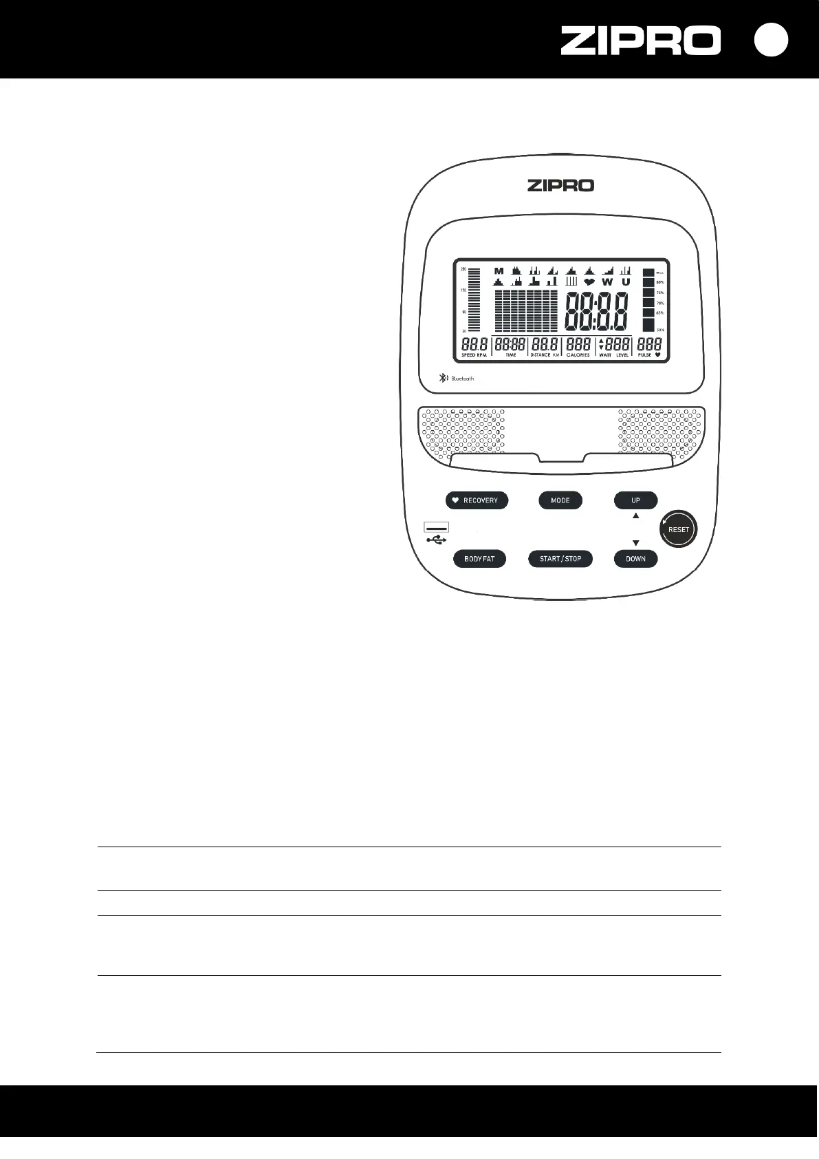 • RESET – face posibilă revenirea la meniul principal în timpul setării antrenamentului sau în timpul