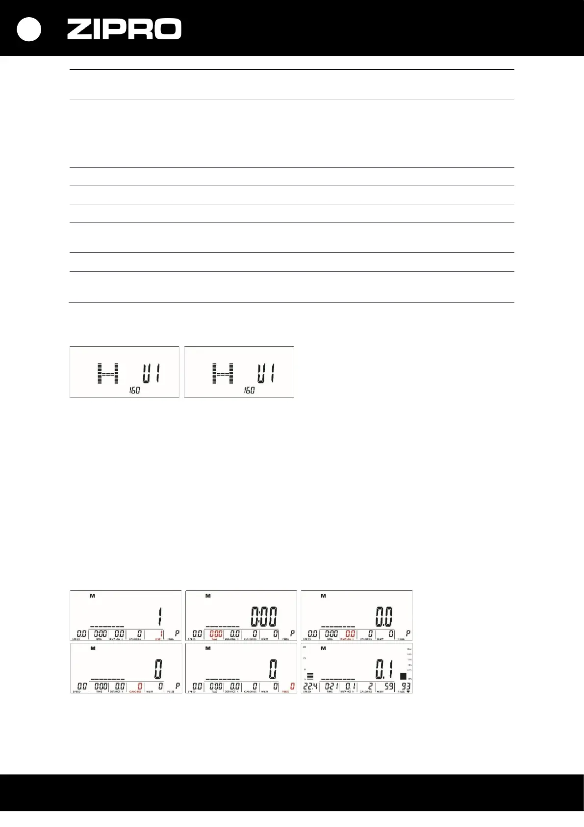 Ordinea modificărilor: M (Manual) →P (Program 1-12) → ♥ (H.R.C) → W (WATTS) → U (utilizator).