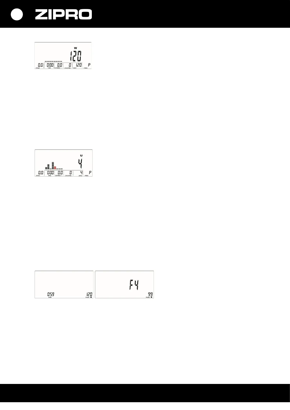Treniruotės metu mygtukais UP ir DOWN galima keisti WATT lygį.