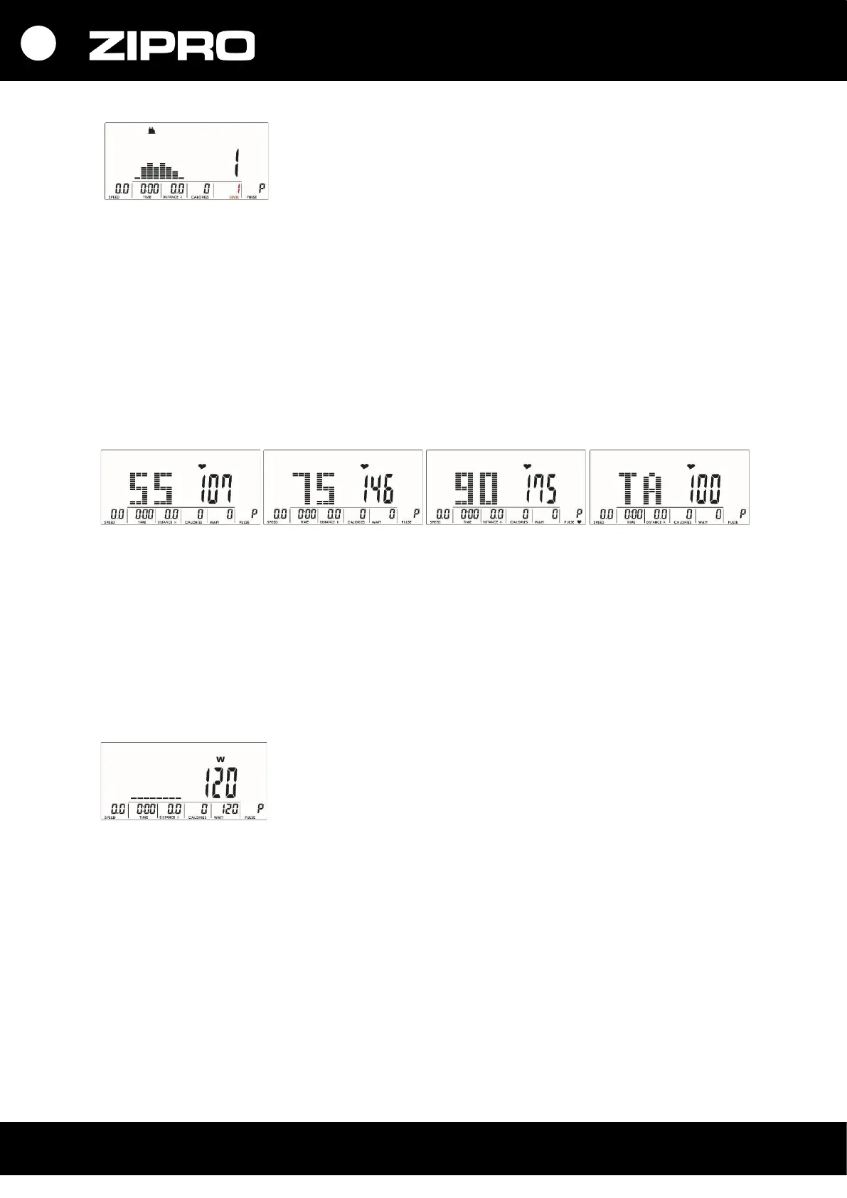 Durante l’allenamento è possibile modificare il livello di intensità (LEVEL) con i pulsanti UP o DOWN.