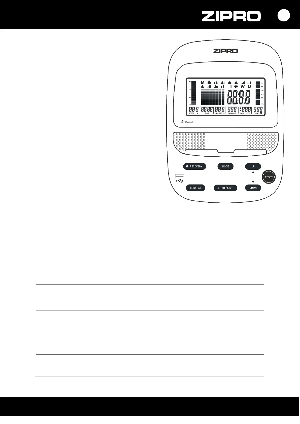 • RESET - permite resetear inmediatamente el tiempo, distancia y calorías.