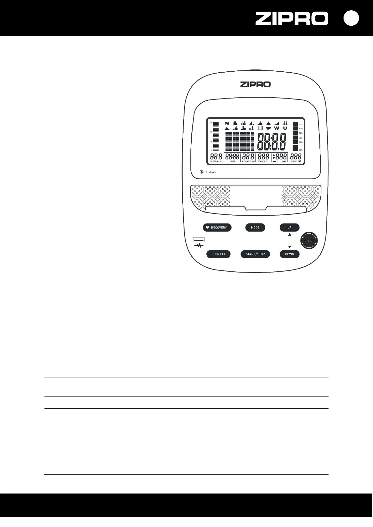 • RESET – it is used to return to the main menu when setting a training or during a programme. To reset,