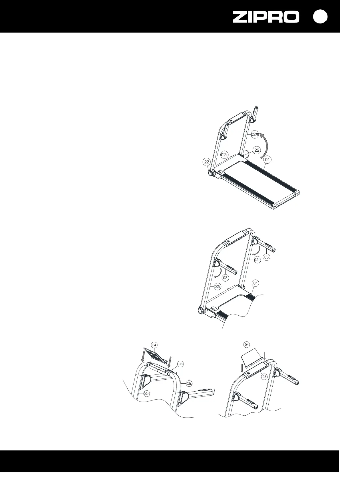 Coborâți suporturile pentru mâini (03) în poziția orizontală