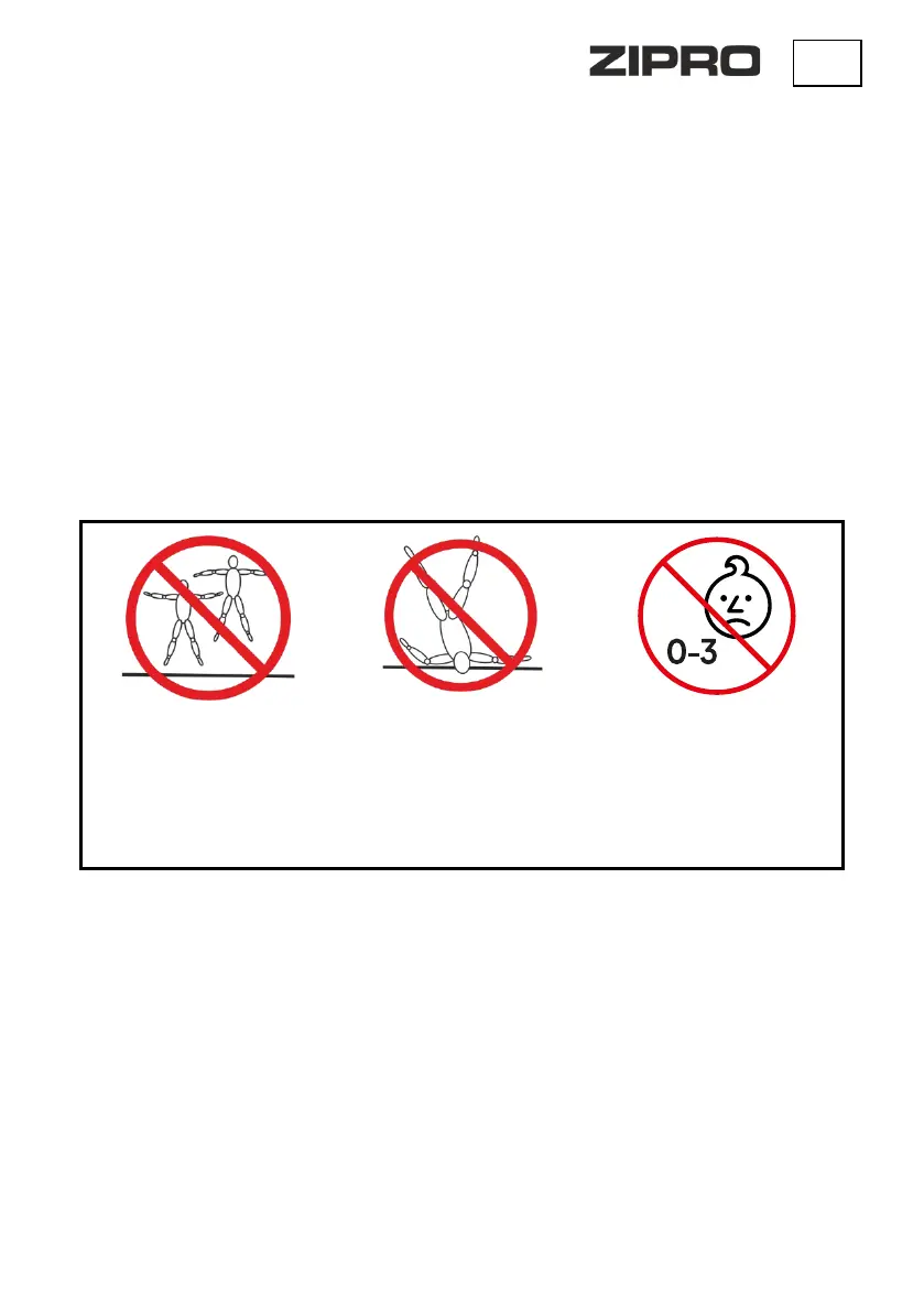 • Dzieci w wieku poniżej 3 lat nie mogą korzystać z trampoliny. Nie są świadome potencjalnych zagrożeń