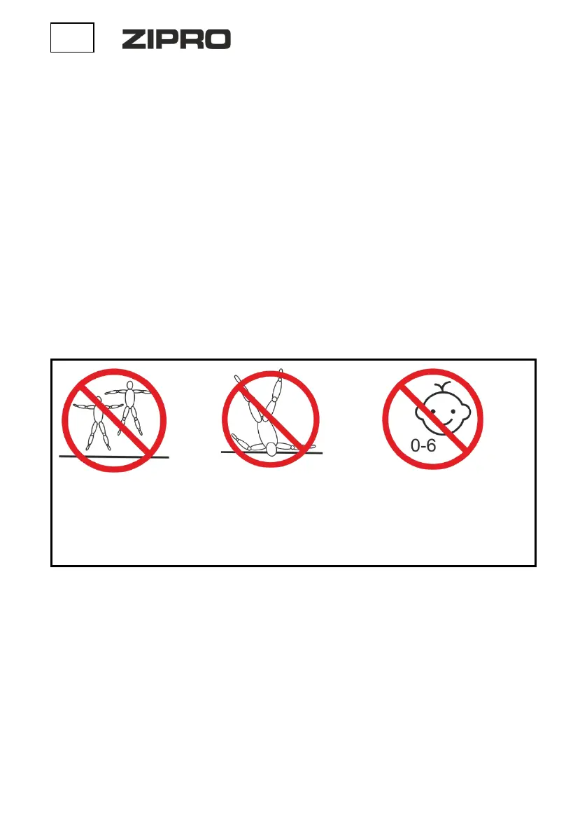 • 3 év alatti gyermekek nem használhatják a trambulinokat. Nem ismerik a nem megfelelő trambulinhasználat