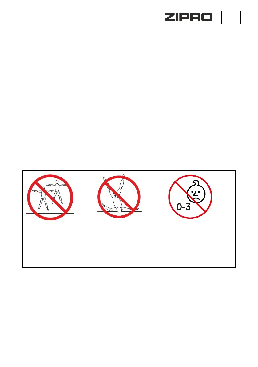 • Деца на възраст под 3 години нямат право да използват батута. Те не са наясно с потенциалните