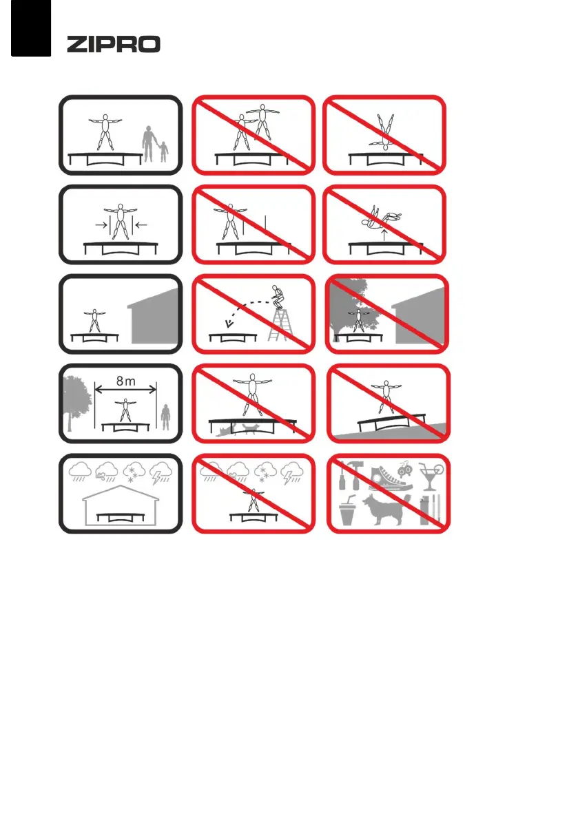 The trampoline must not be used by pregnant women or people suffering
