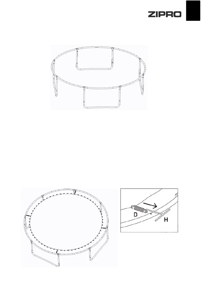 Rozłóż matę do skakania (C) i zamocuj ją do ramy za pomocą sprężyn (D). Sprężynę