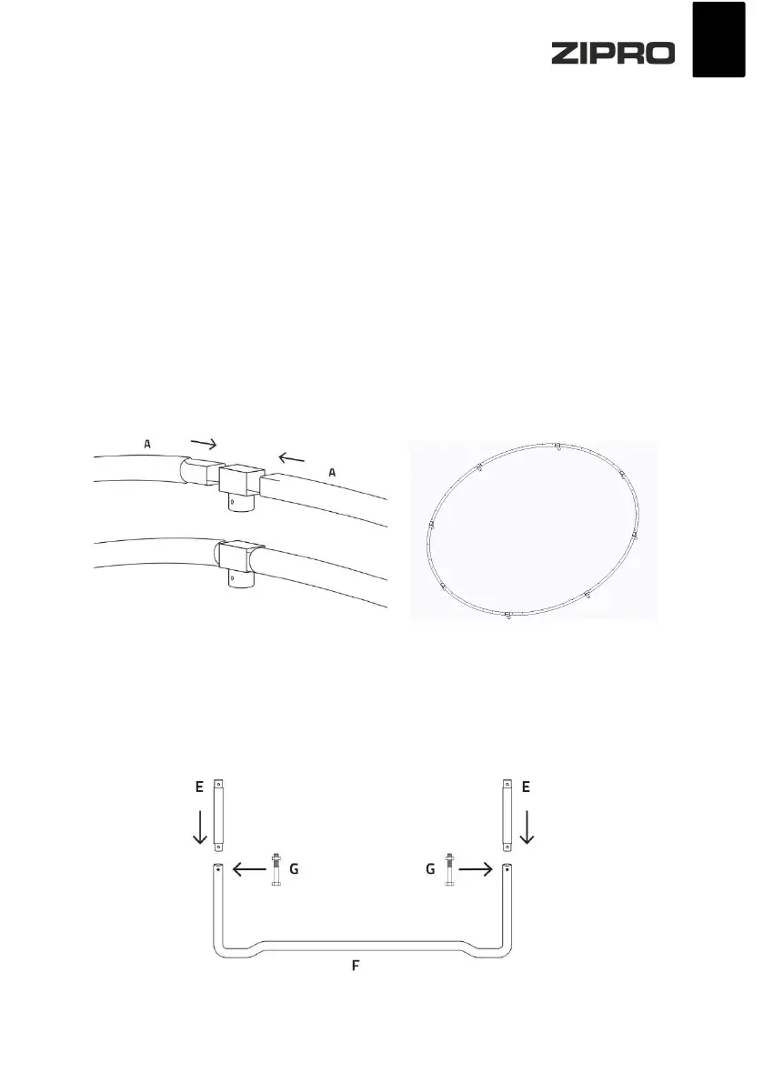 Разложить все элементы рамы (A-H) на полу и организовать для себя