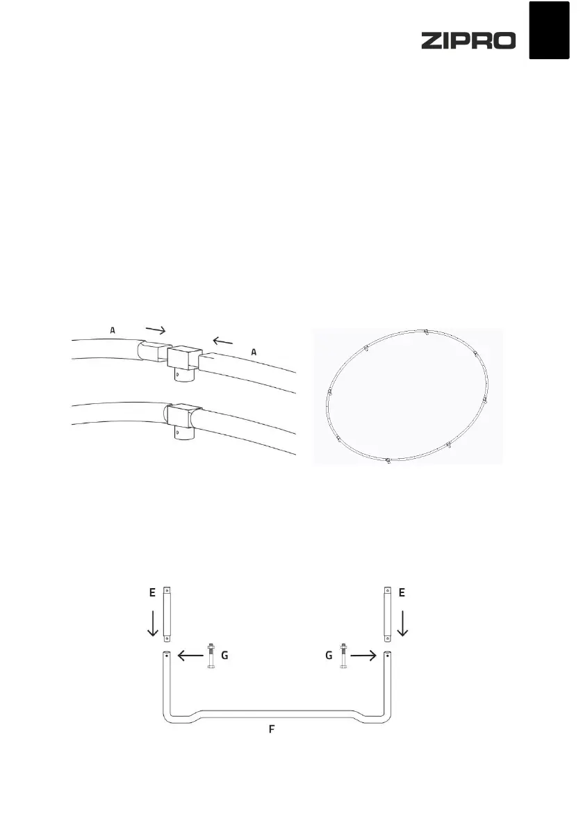 Cuplaţi barele de sus (A) cu ajutorul formei “T”, astfel încât să formeze un cerc.
