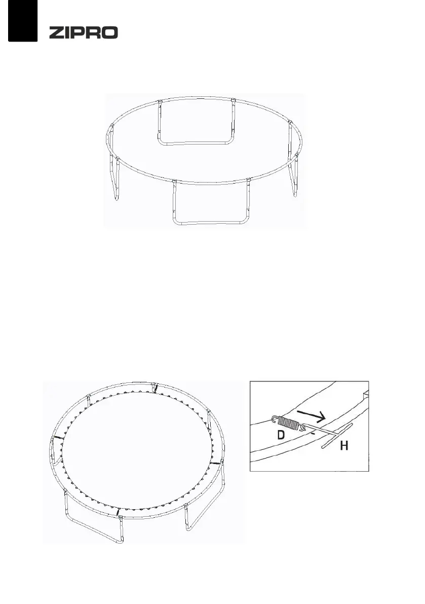 Desfaceţi suprafaţa pentru sărit (C) şi montaţi-o pe ramă cu ajutorul arcurilor (D).