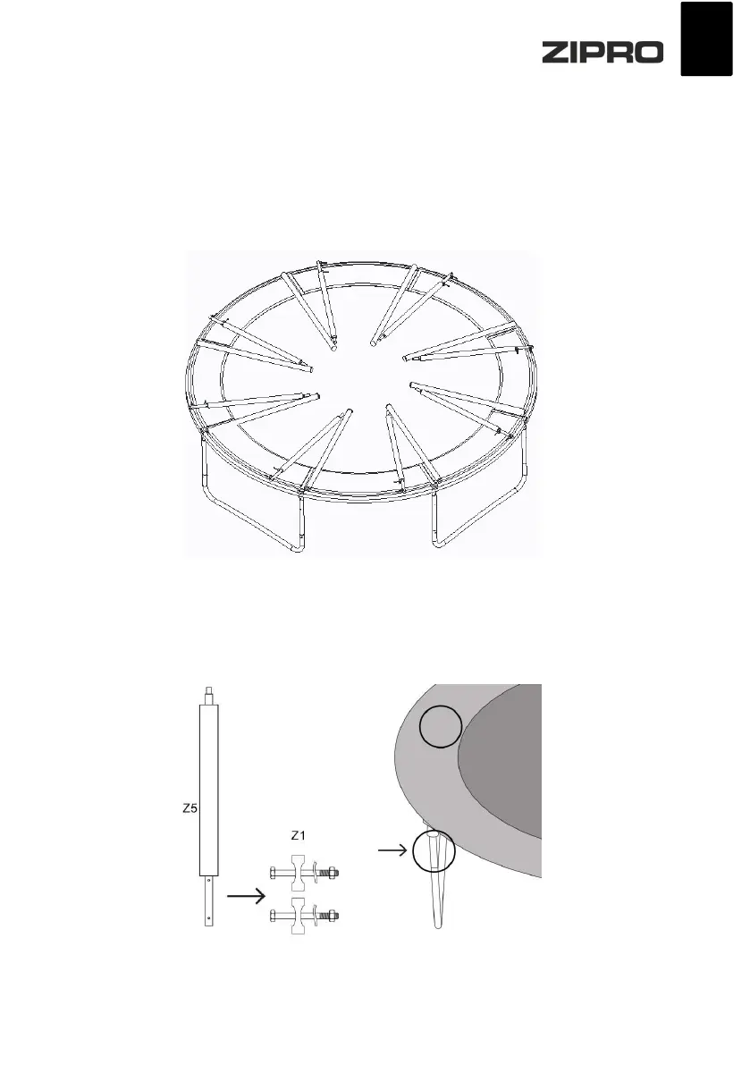 stâlpi (Z5) pe picioarele trambulinei. Montaţi şaibe de distanţare între stâlpi şi