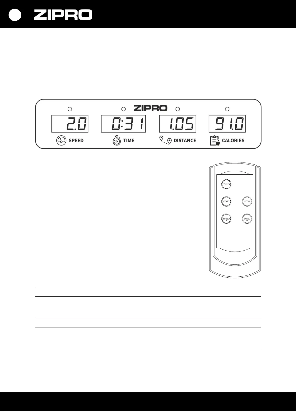 STOP – stops a running treadmill. When it is pressed, settings are reset