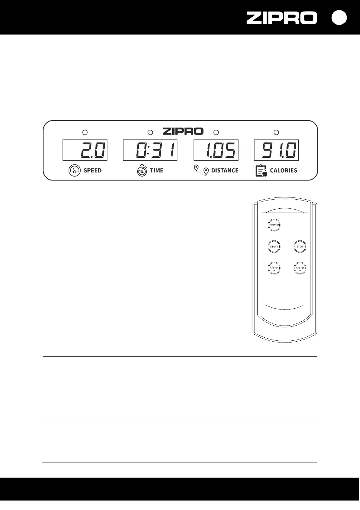 SPEED Zeigt die aktuelle Geschwindigkeit an. 1-6 km/h