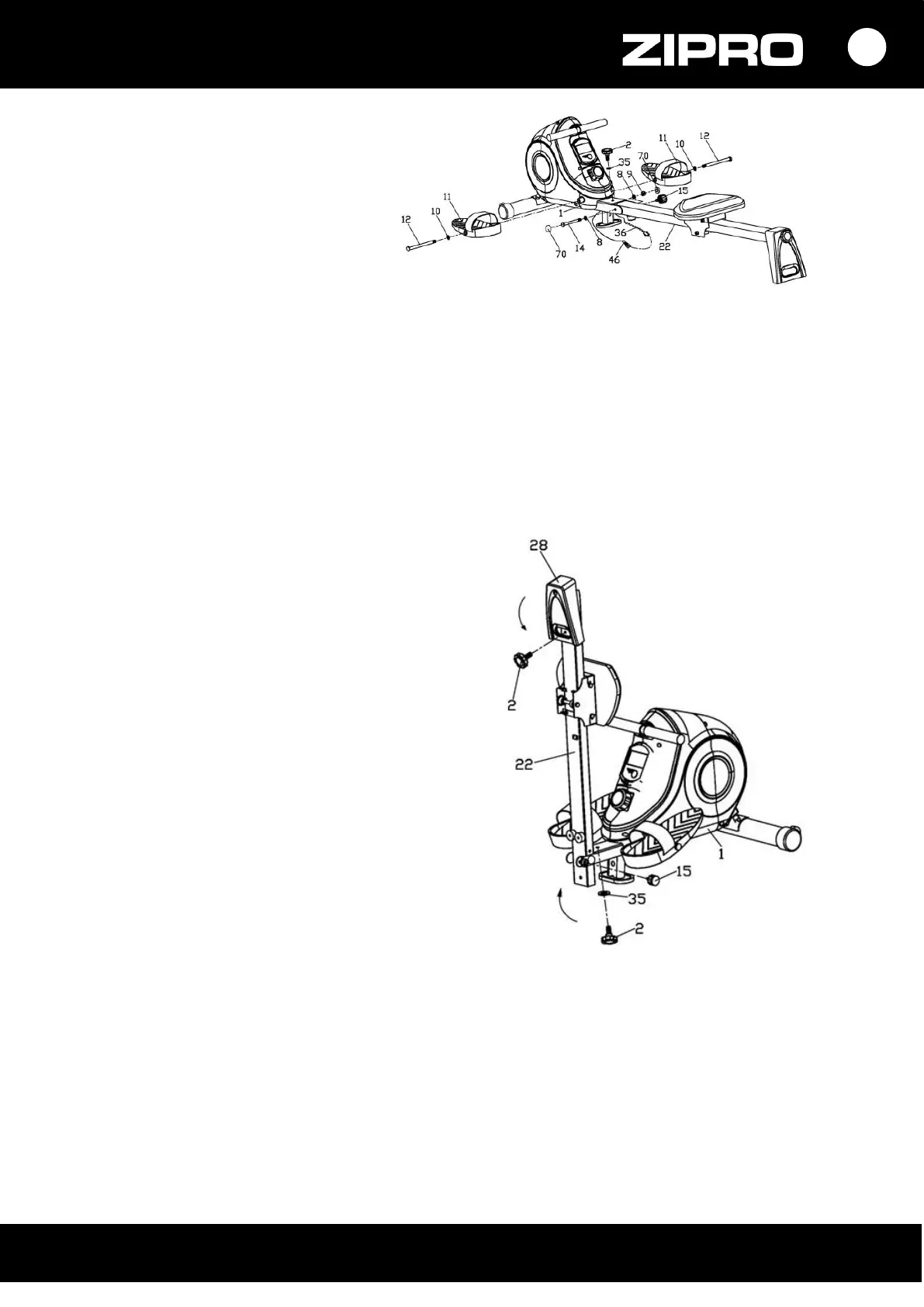 Vissez les pédales (11 L / R) au cadre principal (1) avec des vis (12), des rondelles plates (10).