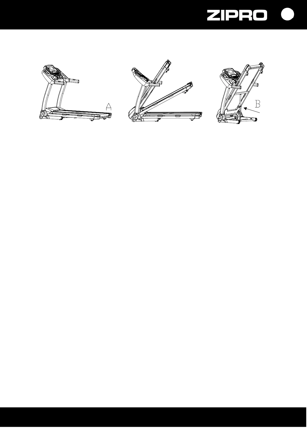 Zvedejte běžecký pás (A) zařízení do svislé polohy až do