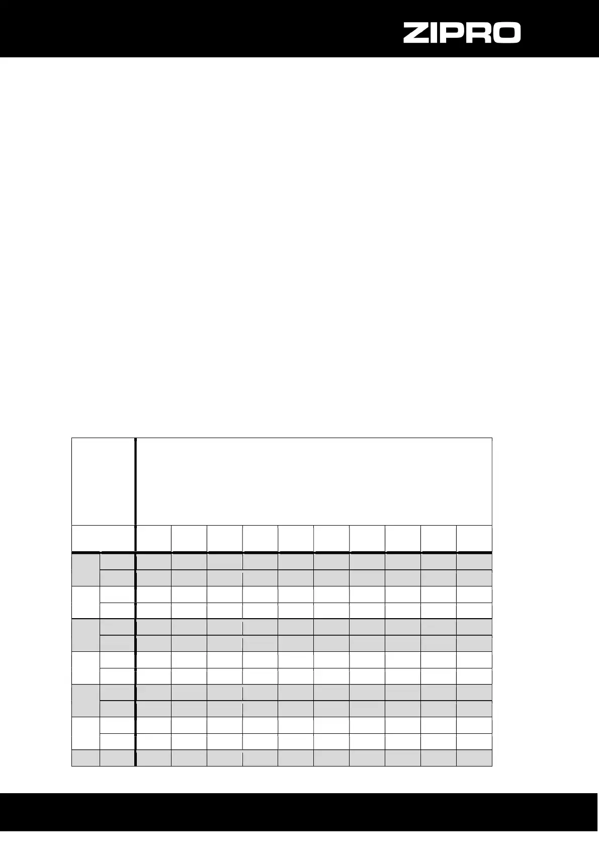 Ustawiony czas treningu dzielony jest proporcjonalnie na 10 etapów. Tabela przedstawia