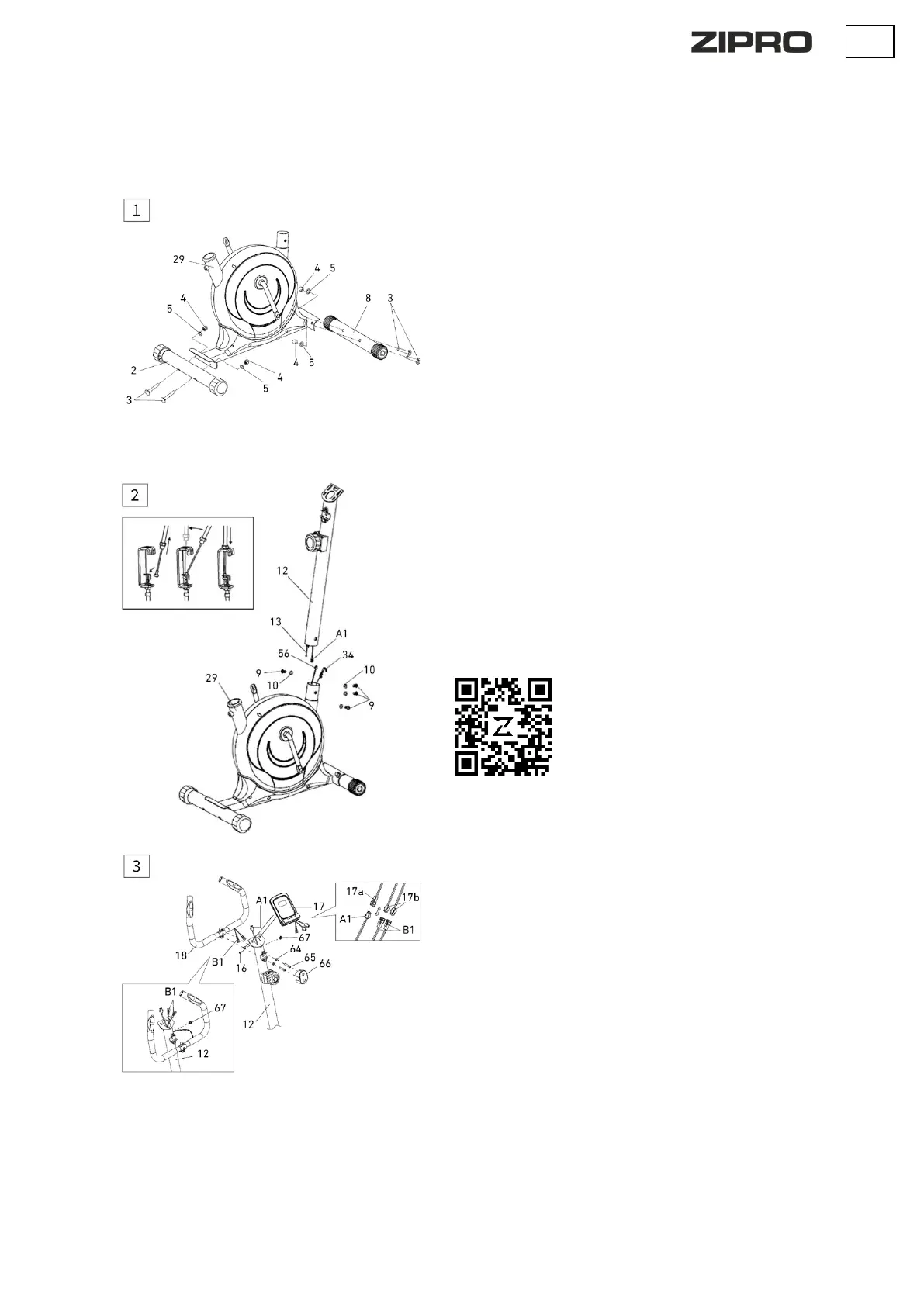 Vložte řídítka (18) do představce (12) pomocí šestihranných šroubů (65) a