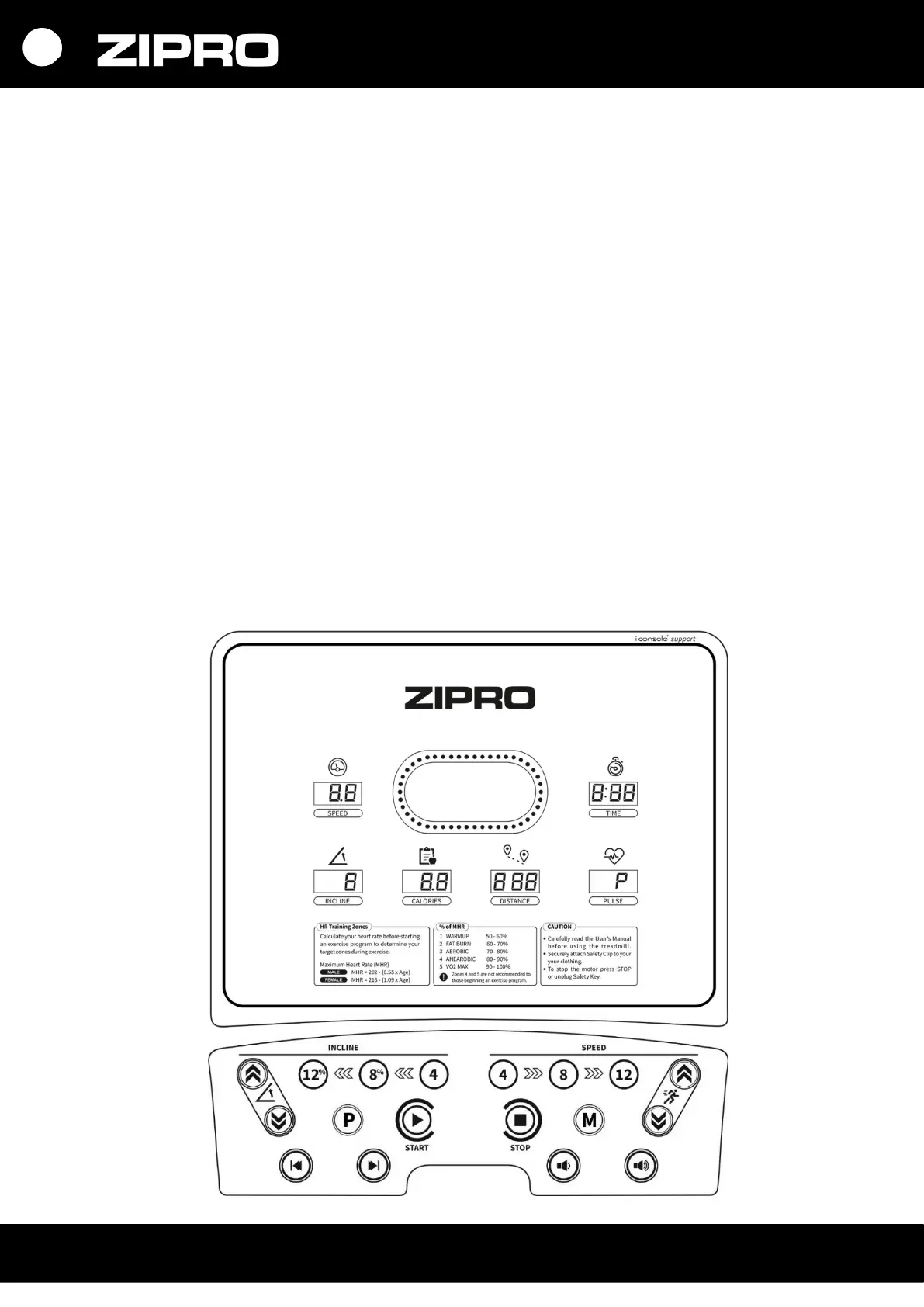 zatrzymany zostanie także system podnoszenia pasa biegowego. Zatrzymanie zasygnalizuje krótki alarm