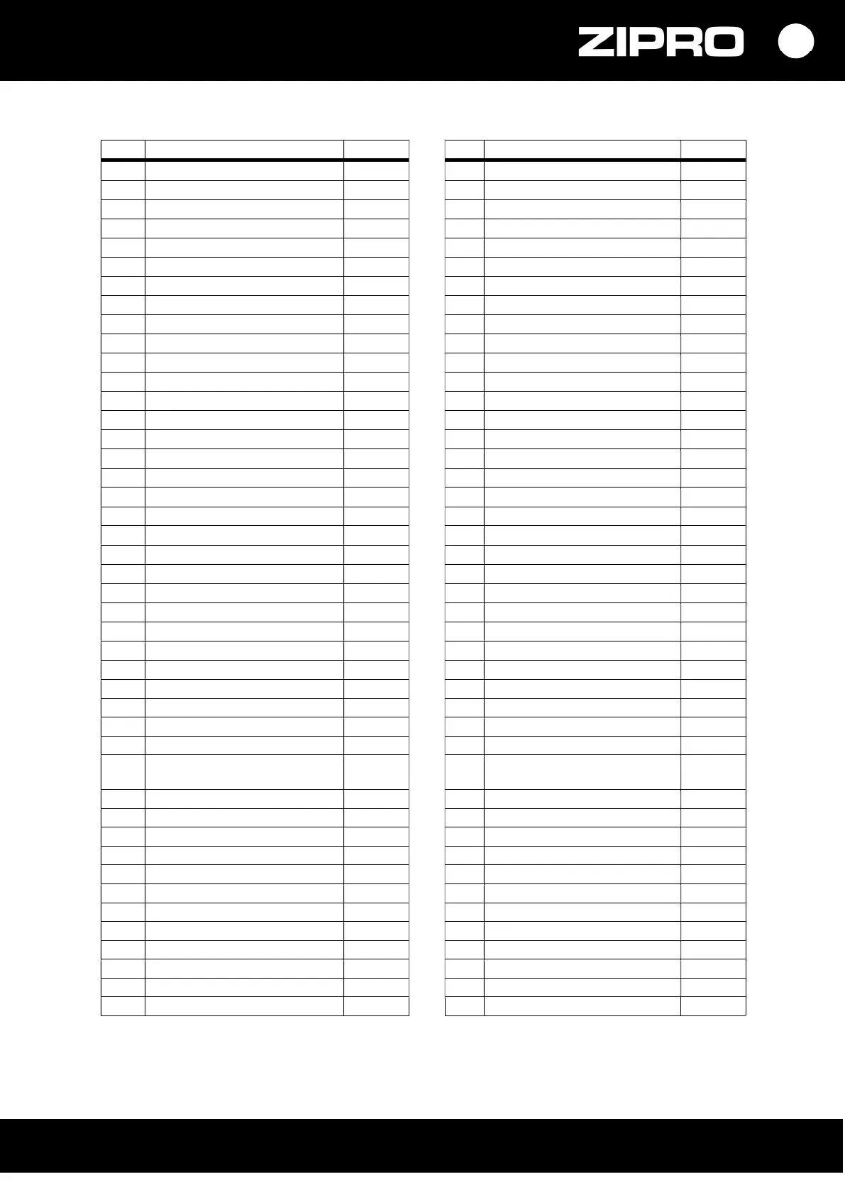 No. Description Quantity No. Description Quantity