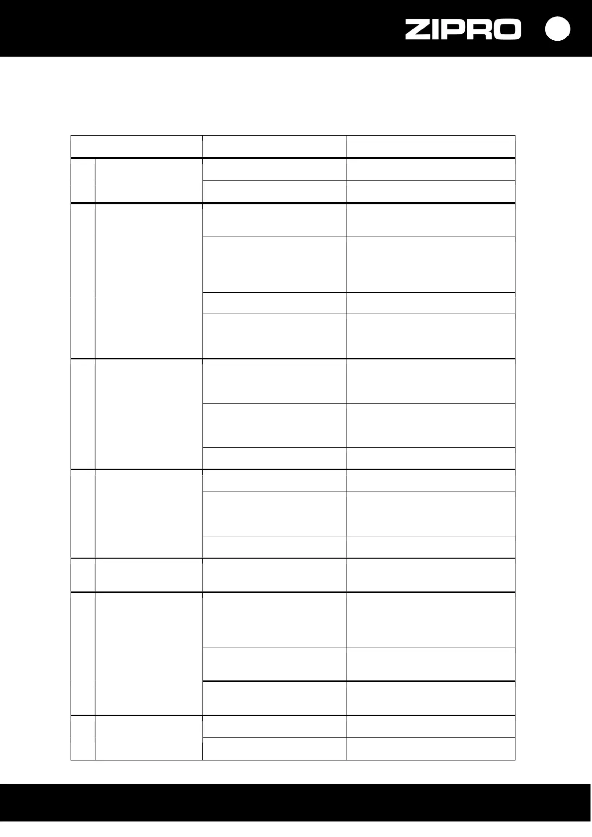 Error description Possible causes Solution