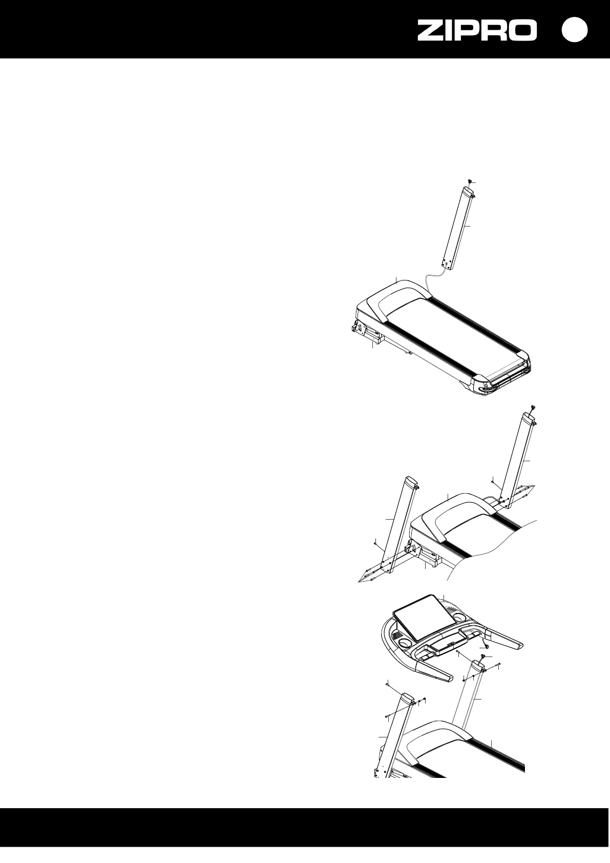 Laufbandsäule (5) am unteren Rahmen fest (3) mithilfe der