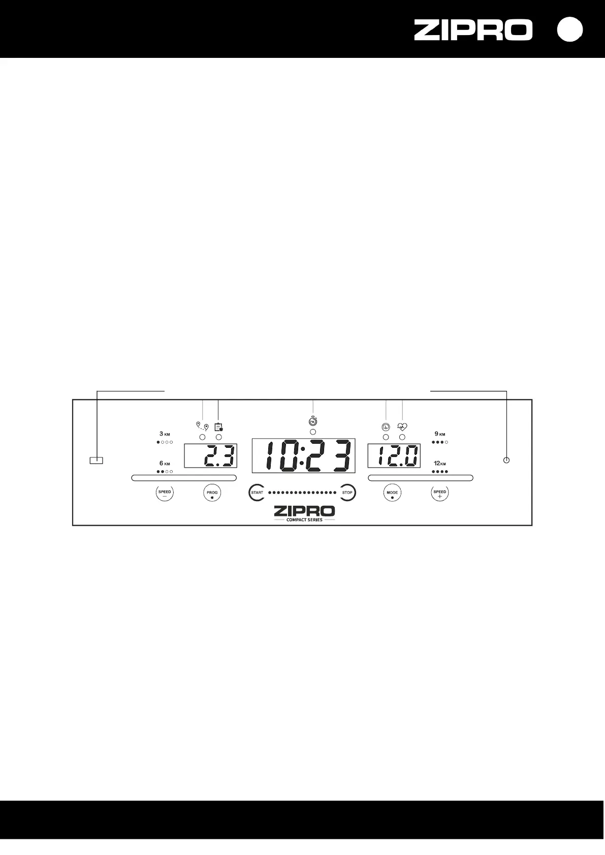 PROGRAM (PROG) — it is used to select a workout programme automatically (P1- P12) a user