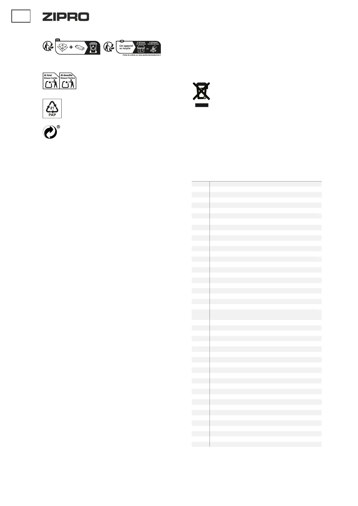recyclable. Séparer les déchets conformément aux