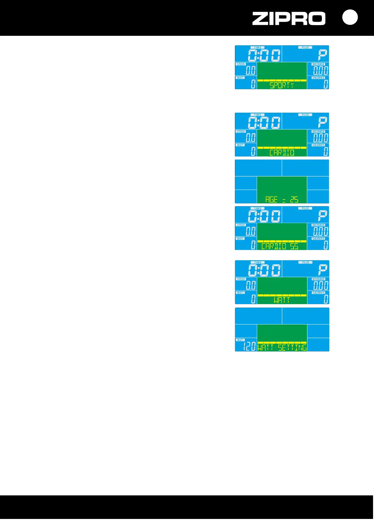 • Mygtukais UP ir DOWN nustatykite treniruotės laiką.