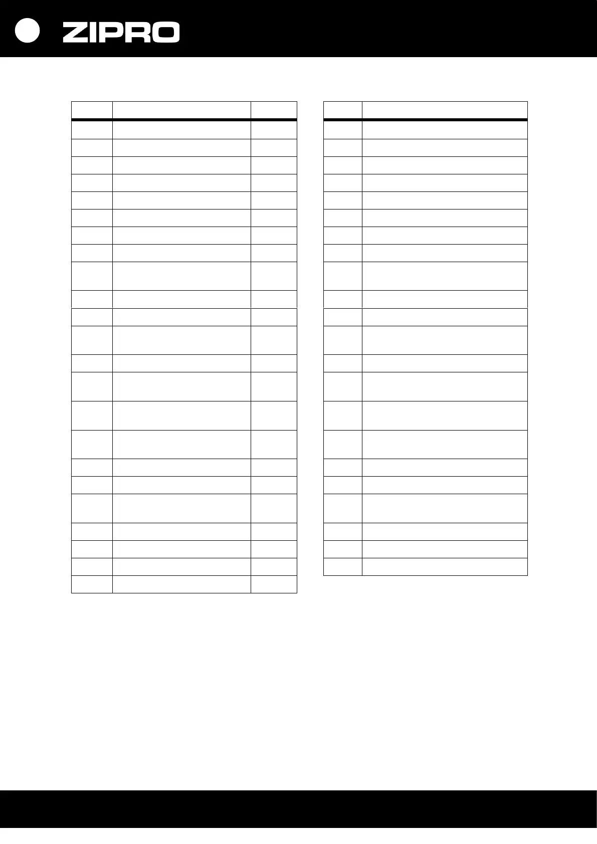 Zipro Rook Gold - Liste des Pièces
