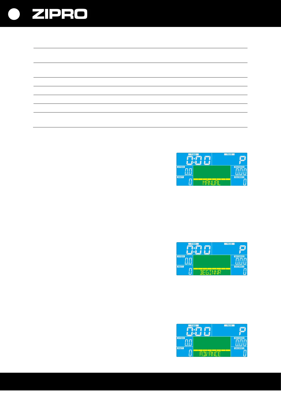 Sie können das Trainingsprogramm mit den Tasten UP und DOWN auswählen.
