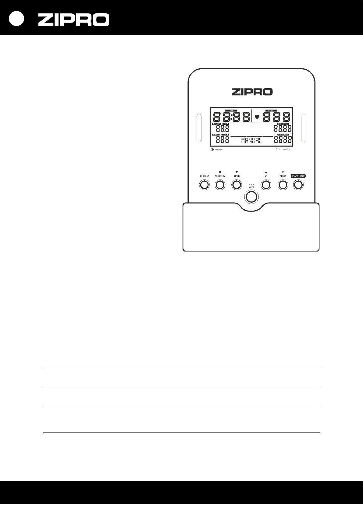 • RESET - позволяет вернуться в главное меню при настройке тренировки или во время текущей