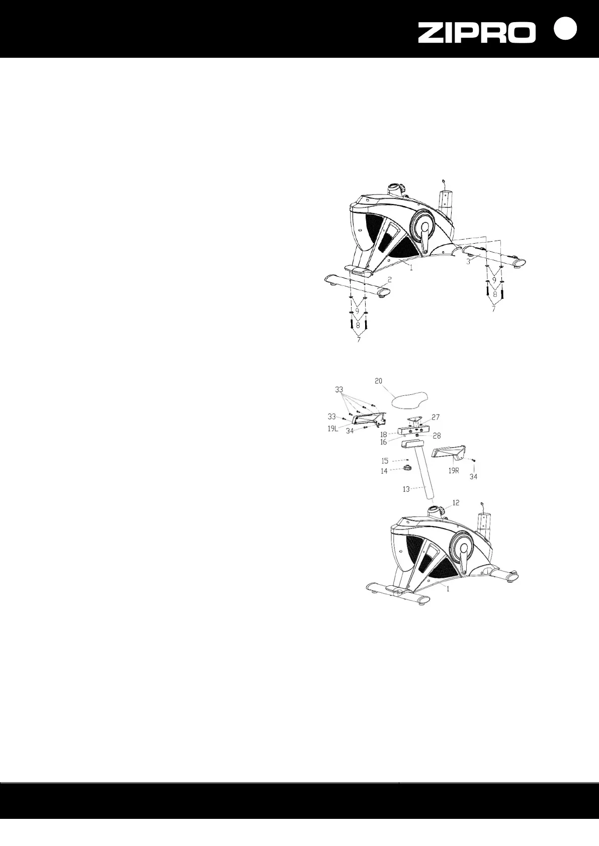 washers (27). Fix the guide (18) with the saddle (20)