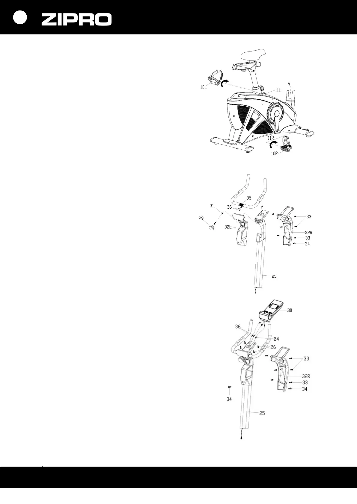 Привинтите педали (10L/R) к шатунам (11L/P).