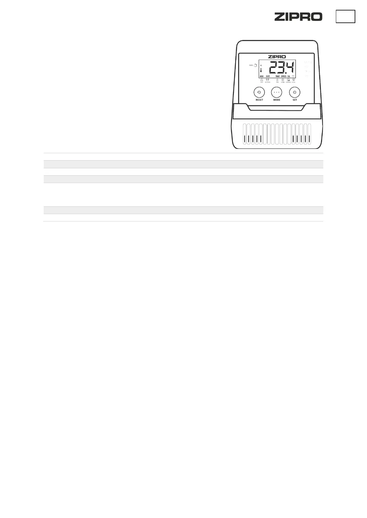 RESET - dient dem sofortigen Zurücksetzen der Dauer, Distanz und Kalorien.