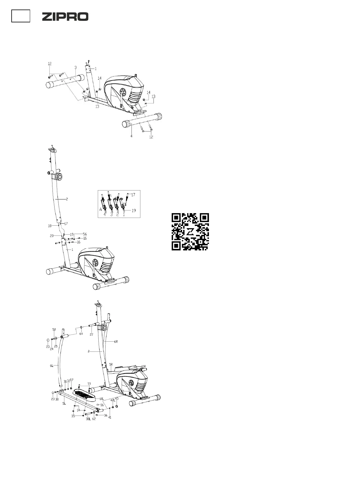 Namontujte zadný (4) a predný (3) podstavec k hlavnému rámu (1), použite