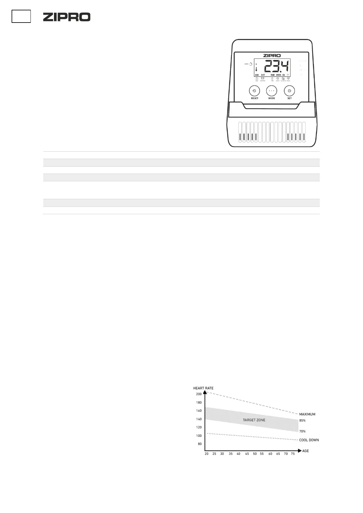 RESET - służy do natychmiastowego zresetowania czasu, dystansu oraz kalorii.