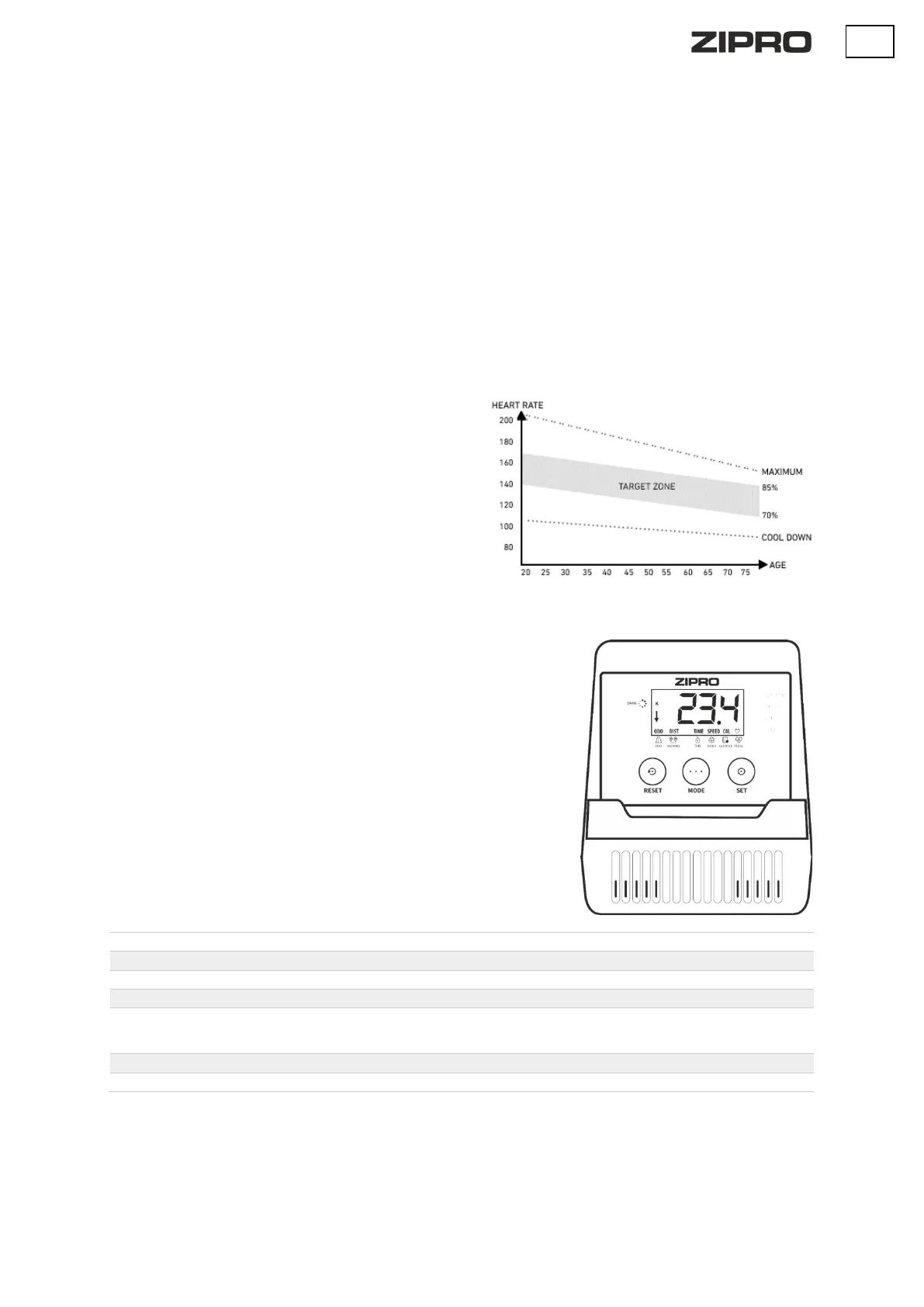 RESET - sert à remettre à zéro le temps, la distance et les calories.