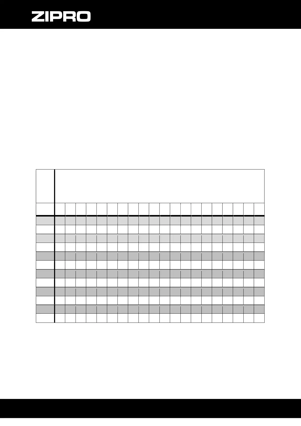Ustawiony czas treningu dzielony jest proporcjonalnie na 20 etapów. Tabela przedstawia