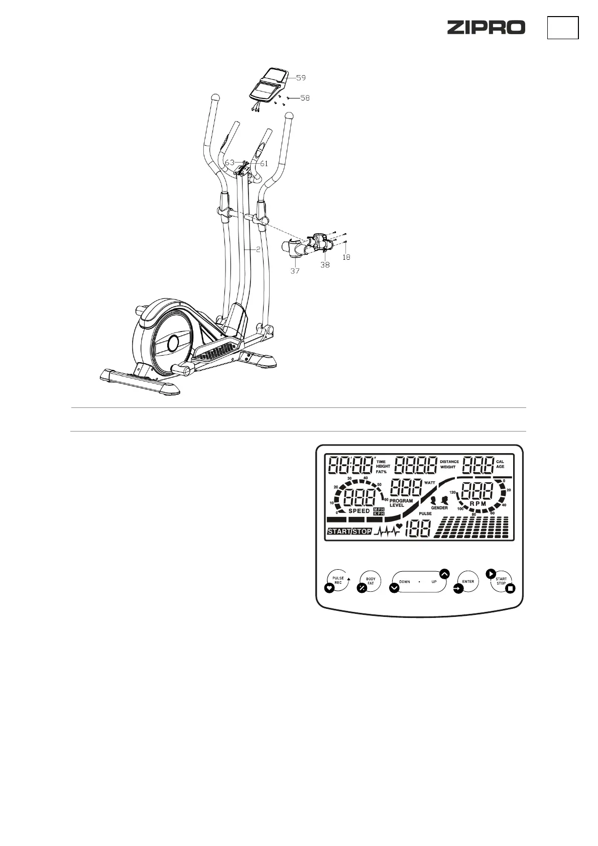• UP - est utilisé pour sélectionner une valeur et augmenter le niveau de valeur. En mode START, il permet d'augmenter le niveau de résistance