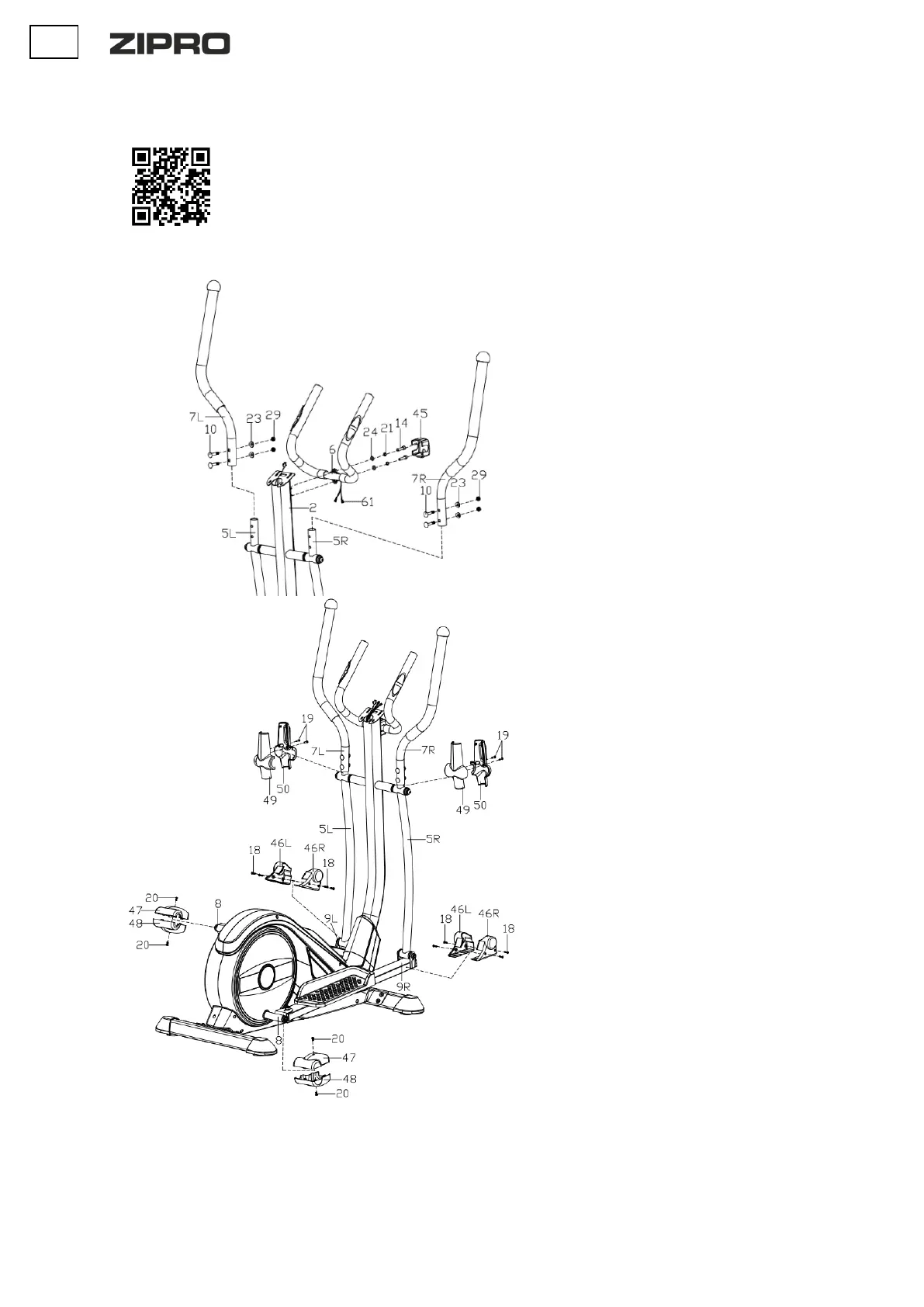 г. Прикрепите правую и левую педали (36L/R) к опорам (9L/R)
