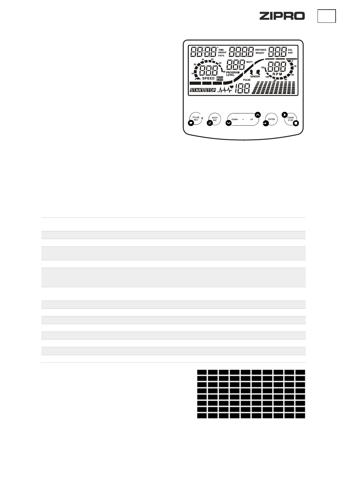 • DOWN - leidžia pasirinkti norimą vertę arba sumažinti skaitmeninę vertę. START režimu jis leidžia sumažinti pasipriešinimo lygį (LEVEL).