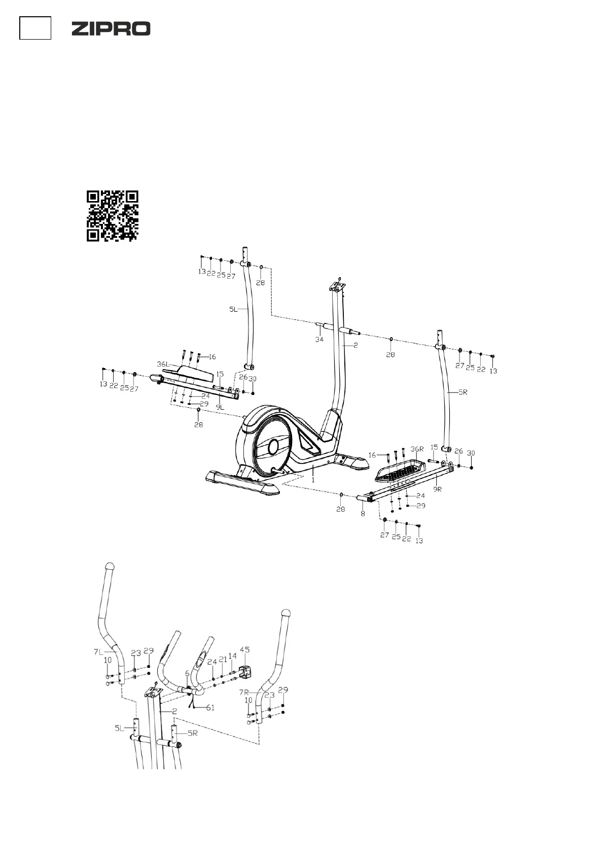 d. Szereld fel a bal és a jobb pedált (36L/R) a bal és a jobb pedáltalpra