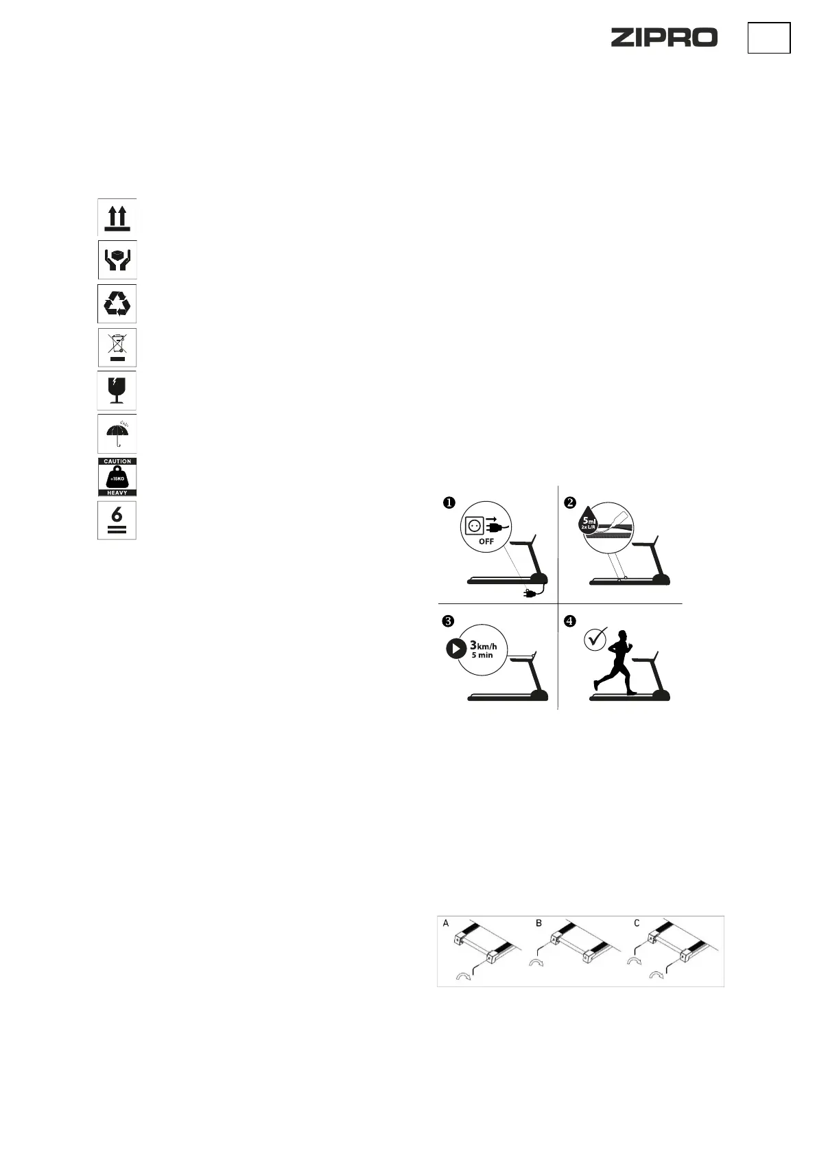Umístěte běžecký pás na rovné ploše. Spusťte běžecký pás s rychlostí