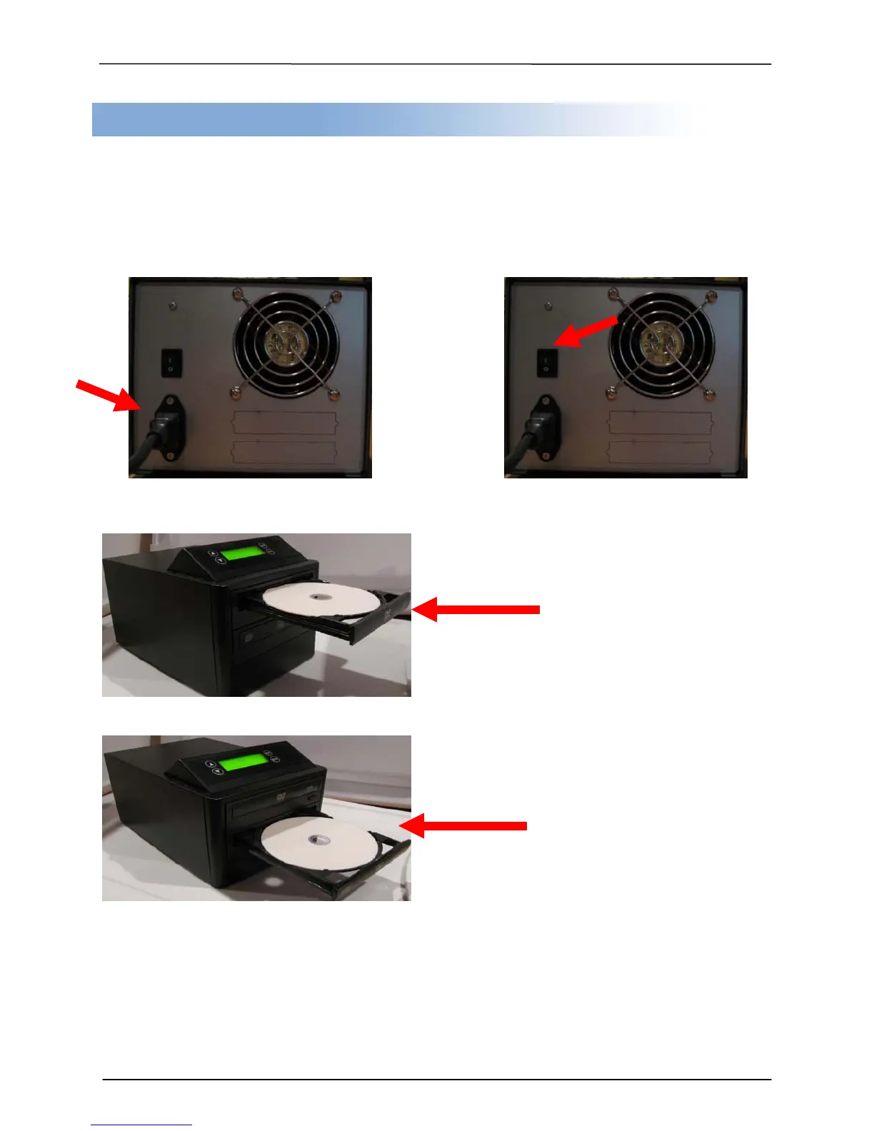 Step 4: Eject lower drive and insert Blank Disc. Close lower tray.