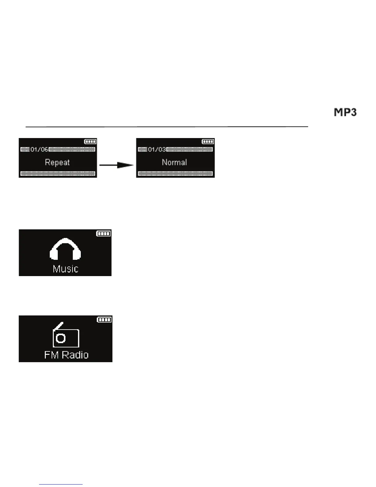 En la pantalla de FM Radio, la tecla "" llevará al usuario al menú de Radio