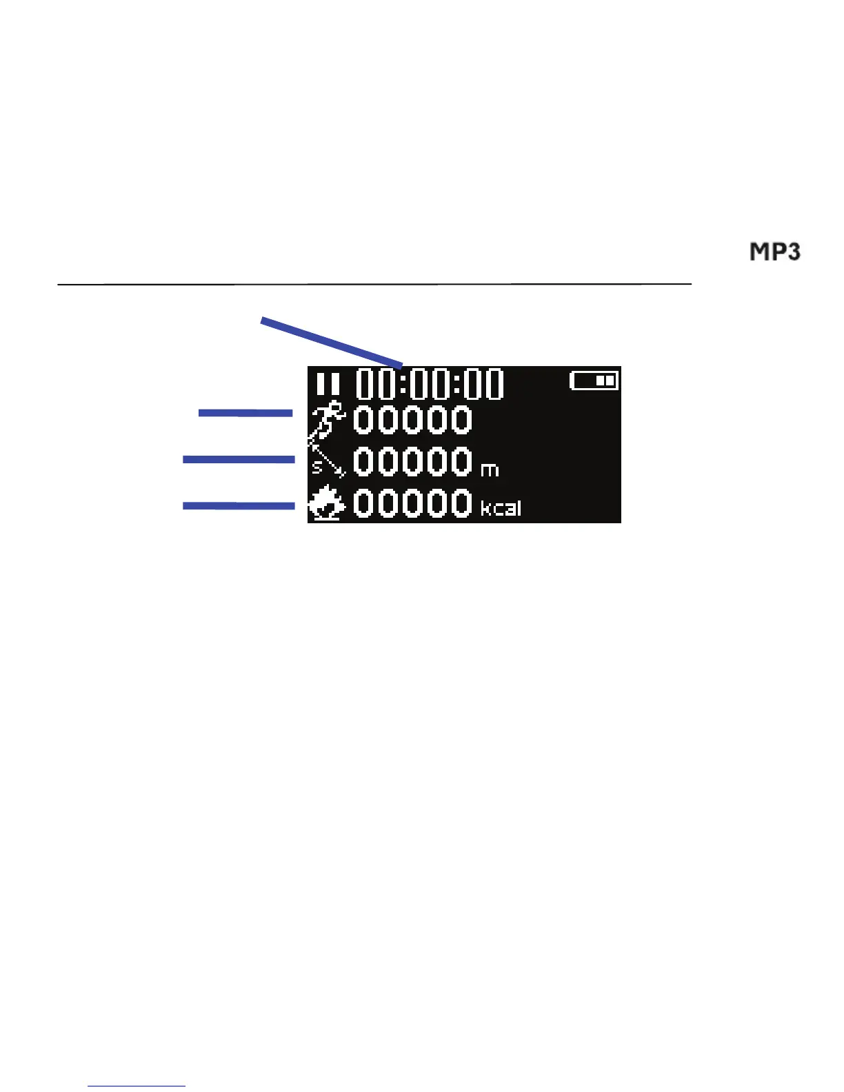 En el menú principal, pulse + o - para seleccionar Podómetro y pulse "" pa
